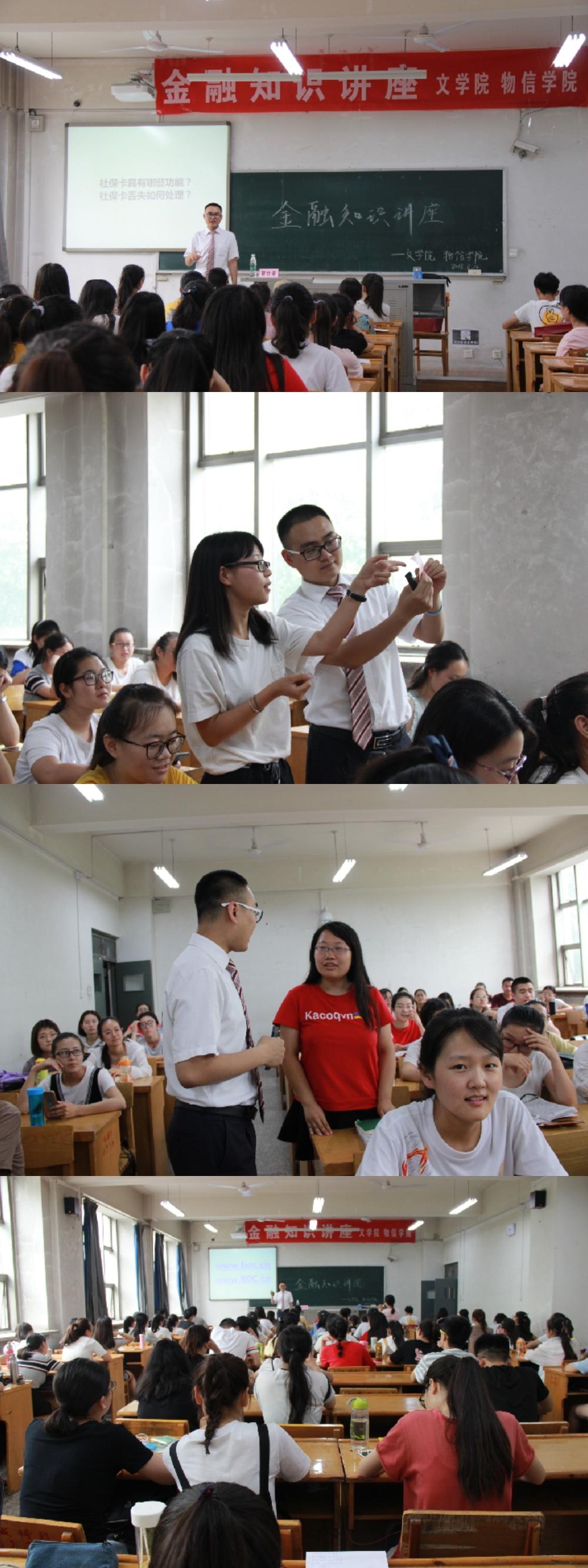 主讲人翟世豪做了题为“普及金融知识,守住‘钱袋子’”的专题报告。他通过使用诙谐幽默的语言和列举生动形象的案例,主要向同学们讲解了“社会保障卡”“大学生预防电信诈骗、网络贷款陷阱”“真假人民币识别”等方面的知识。他尤其强调了大学生容易进入社会上非法借贷组织者的圈套,一定要谨慎使用或尽量不使用蚂蚁花呗、京东白条及借贷宝等软件,妥善保管好个人钱财,学会量入为出、适度消费。此次讲座进行过程中穿插了有奖问答环节,在座的学生们积极举手发言,同时提出了在日常生活中使用微信、支付宝等支付软件过程中产生的疑问,主讲人针对问题一一做出了细致解答。