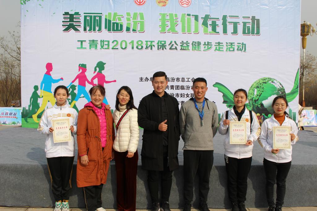 11月23日上午,新葡萄88805官网参与了市总工会、团市委、市妇联在九州广场联合举办的“美丽临汾 我们在行动”2018环保公益健步走活动。市环保局局长李永芳、市总工会党组书记常务副主席冯珍、团市委书记王栋、市妇联主席杨玉果及相关组织负责人出席现场。
