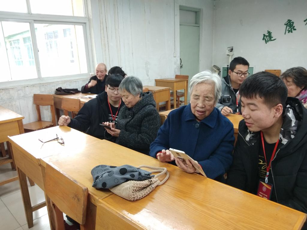 在退休老干部处,小组成员崔轩阁详细讲解了微信的功能及使用方法,指导老师们进行添加微信好友、申请加入微信群、收看或发送消息和图片等操作,并发起群聊方便大家日常交流。目前,已有26位老师加入“老干部处退休老师微信群”。