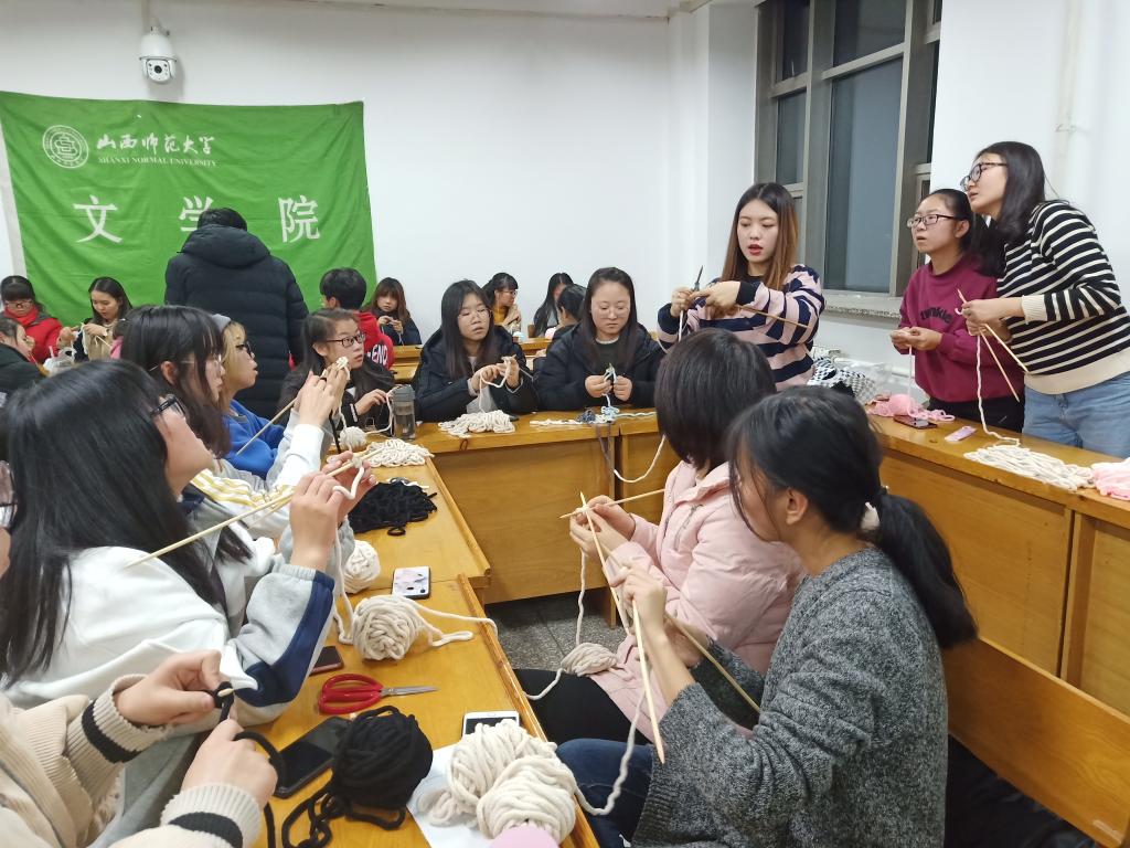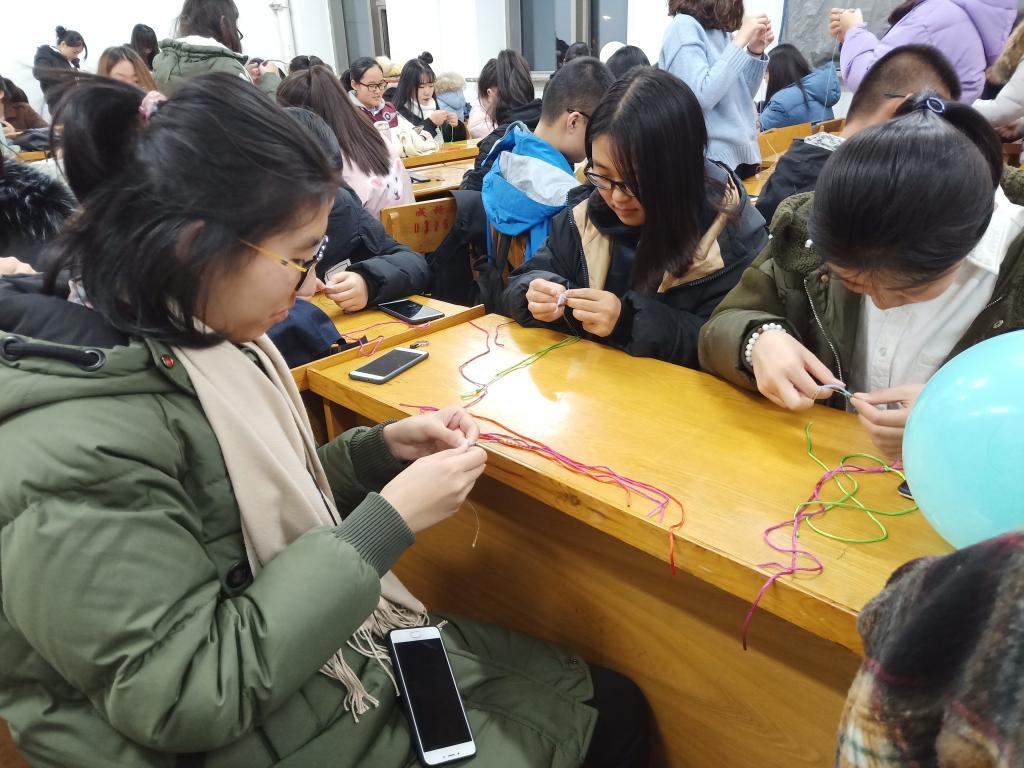 12月9日晚,新葡萄88805官网第九届编织文化艺术节在12306、12307 和12308教室成功举办。200余名学生参与学习,14位特邀小老师现场教授编织方法和技巧。