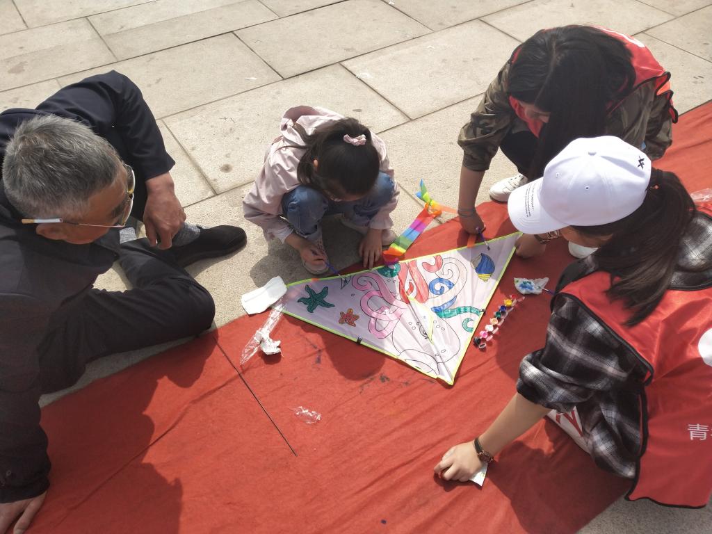 活动共分为上午和下午两个时段。期间,小组志愿者积极配合工作,耐心指导每一位少年儿童,帮助他们放飞风筝。“今年是中华人民共和国成立70周年,我们在风筝上写满了对祖国的美好祝愿,让蔚蓝的天空和我们一起祝福祖国,共同见证祖国今日之辉煌。”志愿者王力冉在活动结束后分享道。