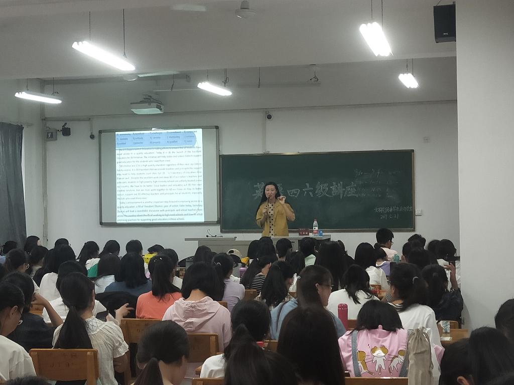 本次讲座旨在让考生了解四、六级考试的具体形式流程、方法技巧和解题策略,让学生们意识到应有针对性的投入到英语学习中去,同时也增强了大家学习英语的信心。