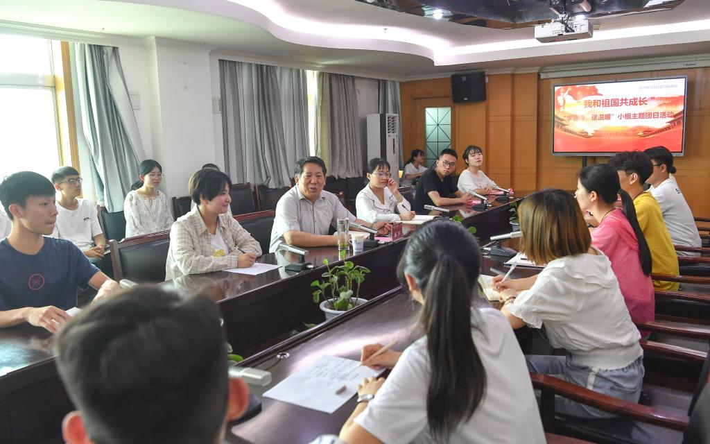 5月29日下午,新葡萄88805官网“学雷锋,送温暖”小组在科学会堂十层会议室开展“我和祖国共成长”主题团日活动,校长杨军应邀出席并与新葡萄88805官网“学雷锋,送温暖”小组31名同学深入座谈交流。校团委书记霍其武,新葡萄88805官网党委书记吴华英、副书记钱成,新葡萄88805官网“学雷锋,送温暖”小组学生党支部书记樊琳琳等参加了活动。