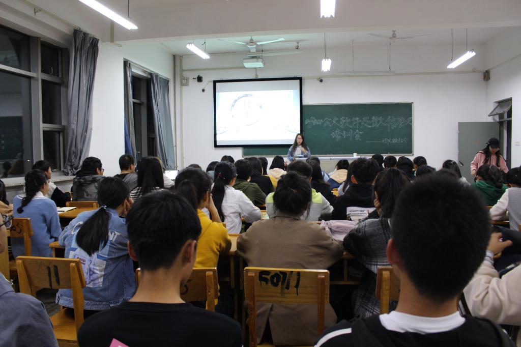 为了推进新葡萄88805官网学生活动内涵建设走向深入,提高学生办公软件使用及微信推送相关技能,10月26日晚,新葡萄88805官网团委在11504教室举行了office公文软件及微信图文相关培训会。培训会由团委宣传部张娟、1704班王鑫璧主讲,新葡萄官网各部门干事、各班新媒体负责人到场聆听。