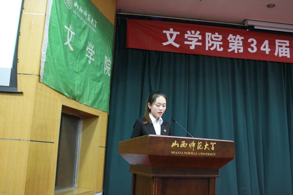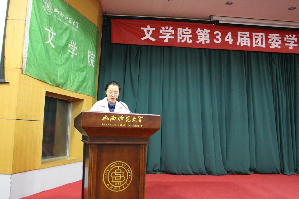第三十三届学生团委副书记杜晓玥、学生会主席赵连国对上一学年新葡萄88805官网学生工作情况进行了汇报总结,向老师们的指导帮助与大家的辛勤工作表示了衷心感谢。杜晓玥希望,在场的每一位同学都能在团委学生会这一平台找到自豪感、荣誉感,为学院发展贡献自己的青春力量。赵连国分享道:“换届后的生活,我们都有新定位、新挑战,但我们依旧要不忘初心,铁肩担道义,不负文院情。”