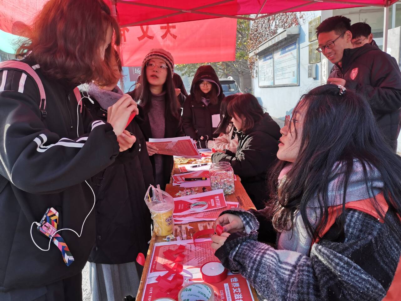 12月1日上午,新葡萄88805官网在校医院门口开展了“关艾有你,为爱同行”的主题防艾宣传。本次活动由“学雷锋,送温暖”小组与团委学生会心理健康部承办。近300名同学参加了本次活动。