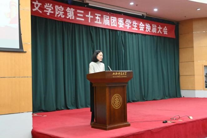 新葡萄88805官网团委副书记樊琳琳总结讲话。她回顾了新葡萄88805官网团委学生会过去的成就,重申了新葡萄88805官网团委学生会为学生服务宗旨。她对下一年的工作做出新的期许:青年人要敢想敢做,新一届的新葡萄88805官网团委学生会成员要更加完善工作细节,发挥其模范带头作用,加强团干部队伍建设,转变工作作风,提高团干部的理论素养和业务能力,也要培育思想引领体系,用实际行动感染身边同学,做理智、有为的青年。最后,她联系了习近平总书记“青年兴,则国家兴”的名言,发出了“大家强,则师大强”的口号。
